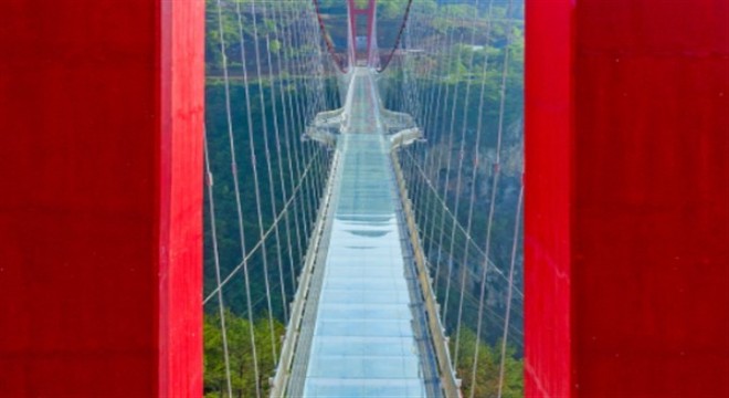 Çin, 526 metrelik dünyanın en büyük cam köprüsünü yaptı