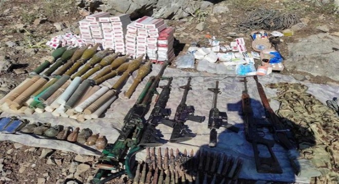 ''108 adet el bombası, 2 RPG-7 bombaatar, 1 14.5 mm Doçka uçaksavar silahı, 3 AK-47 piyade tüfeği, 3 M-16 piyade tüfeği, M-4 keskin nişancı tüfeği, 7.62 mm PKMS makinalı tüfek, 4 Dragunov keskin nişancı tüfeği ve dürbünü, Zagros keskin nişancı tüfeği ve dürbünü, 1.300 adet 5,56 mm mühimmat, 4.000 adet 5.45 mm mühimmat, 700 adet 7.62 mm PKMS makinalı tüfek mühimmatı, 500 otomatik tüfek mühimmatı, 400 piyade tüfeği mühimmatı, 80 RPG-7 roketatar mühimmatı, 80 Zagros keskin nişancı tüfeği mühimmatı, 300 Doçka makineli tüfek mühimmatı, 280 adet 7.62 mm PKMS makinalı tüfek zırh delici mühimmatı, 1.080 adet 7.62 mm PKMS makinalı tüfek mühimmatı, 430 Dragunov keskin nişancı tüfeği mühimmatı, 24 adet AK-47 piyade tüfeği şarjörü, 40 elektrikli fünye, 40 sevk fişeği, 2 sis bombası, 800 litre benzin, 600 litre mazot, EYP yapım malzemeleri, 18 kullanıma hazır basma düzeneği, gece görüş cihazı ve termal kıyafet, 3 jeneratör ile çok sayıda yaşam malzemesi.''
